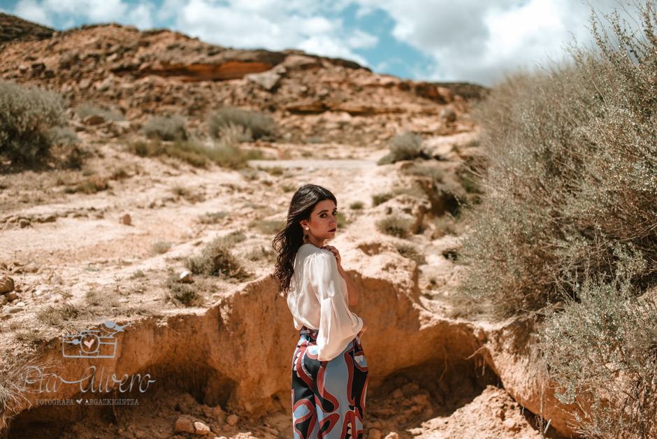 Andrea , tímida, calladica, pero con una fuerza ante la cámara increíble. Nos fuimos a unos de los lugares que mas adoro para fotografiar en los paisajes cirboneros, en la Ribera de Navarra. Y allí pasamos una mañana…. horas y horas habría estado sacando fotografías bonitas a esta chica. Cambiamos muy levemente el look, pero los resultados me encantan. Probablemente fuera su primera vez ante la cámara….pero cuando vean las fotografías pensarán que ya estaba acostumbrada a hacerlo.